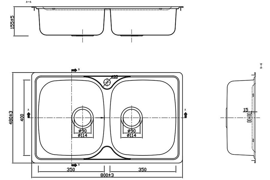 Pomembno: izdelava omarice ali luknje v pultu NI PRIPOROČLJIVA pred nakupom pomivalnega korita zaradi odstopanja dimenzij izdelka do 3% od načrta na spletni strani!