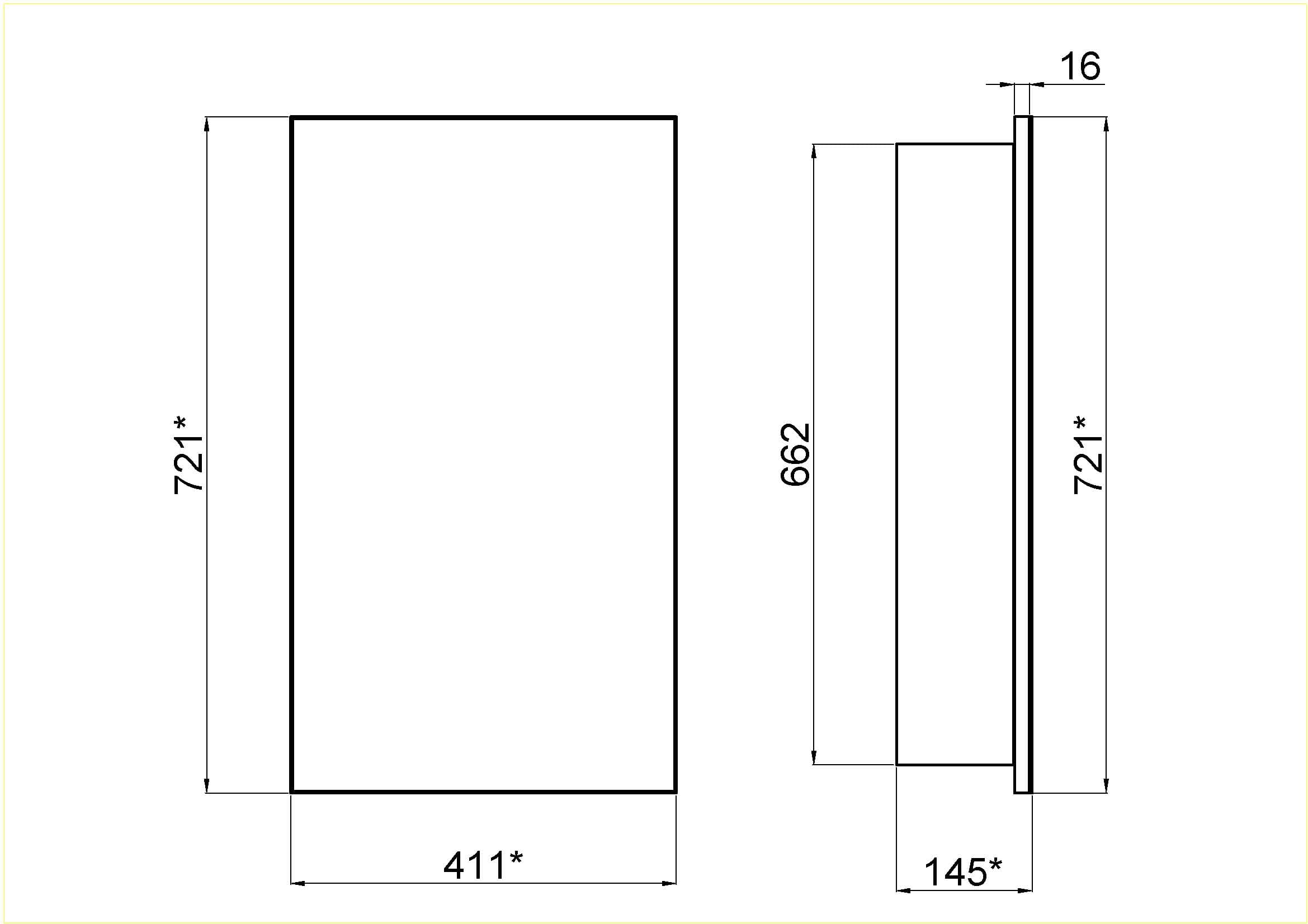 Dimenzije: širina 411 mm, višina 721 mm, globina 145 mm