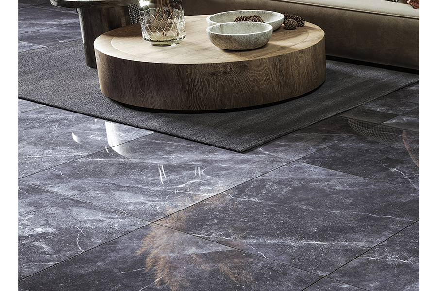 Talne keramične ploščice Space Stone Black Mat 60x60 R mm so izdelane iz bele gline.